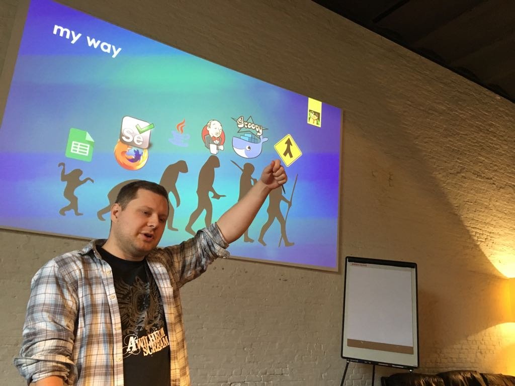 Next up was our own Kirill Artamonov with “Breaking the wall”. Kirill described how he had evolved from a pure testing role (with technical tinkering) to a development role. To his great surprise he found that testing still needs advocating amongst developers, that testing is not as self-evident as we often presume. Even in agile teams, where most walls have been torn down, there is still a big wall that often occurs: the one between testers and developers. Tearing down that wall is where the future is!